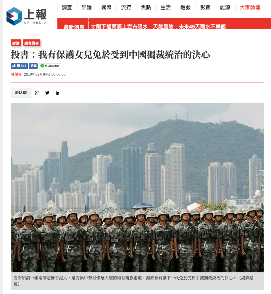 任何一個把我女兒推向獨裁中國那種活地獄的人,都會是我不共戴天的仇人;即便是我的父母。我知道你生我養我育我,恩情大過天;但是,看看所謂一國兩制悲慘香港人,還有集中營裡慘絕人寰的維吾爾族處境-我要保護女兒免於淪為中國獨裁政權下那種人形畜生的決心,絕對蓋過我對任何人的感恩之情。