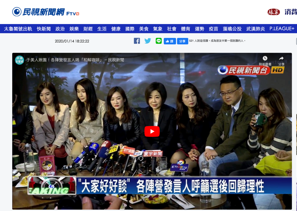 中國對台灣的併吞意圖與作為如此鋪天蓋地,可是于美人之流在2020總統大選的時候可以幫著宋楚瑜在電視上高談「統獨假議題」,然後選後又跳出來揪喝大和解咖啡,要大家回歸理性?
