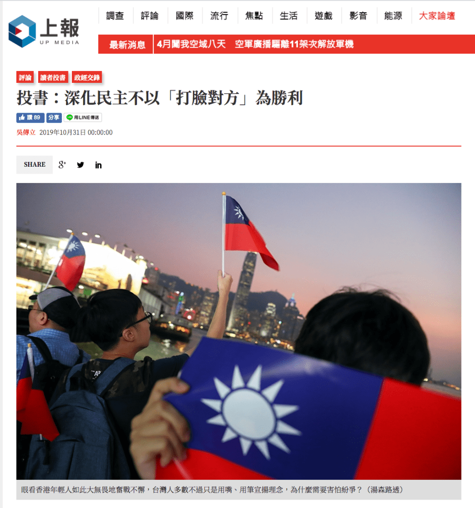 本文刊載於2019年10月31日《上報》