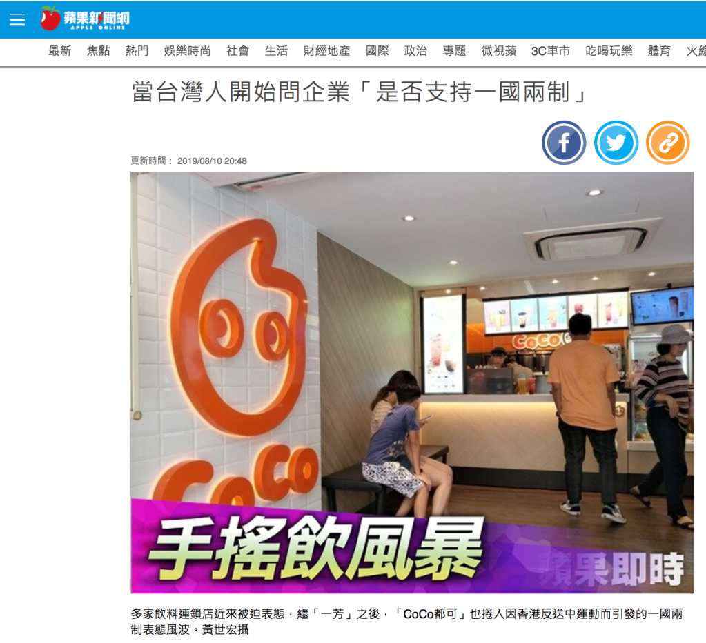 第二,個別企業自願讓自己的生意命脈掌握在敵國的手裡,並不只是「個別企業」的「權利」或「問題」。你要去敵國賺錢,這是個別企業主的選擇、是你的本事,我這個個人沒有能力阻止你,中華民國這個體制也沒有阻止你;可是現在,當那麼多的企業都去敵國賺錢,導致台灣有很大一部分的經濟命脈被中國掐住之後,中國開始逼迫企業承認自己是「中國臺灣」人、好遂行中國併吞台灣的意志的時候,台灣人於是質疑、甚至抵制這些企業~~這難道是台灣人的錯?