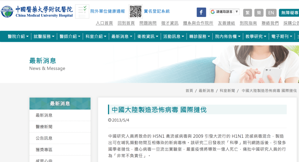 最近又有新聞,說「懷疑武漢肺炎病毒來自實驗室」。(不是我亂掰。連相對親中的聯合報都有報導啦!)