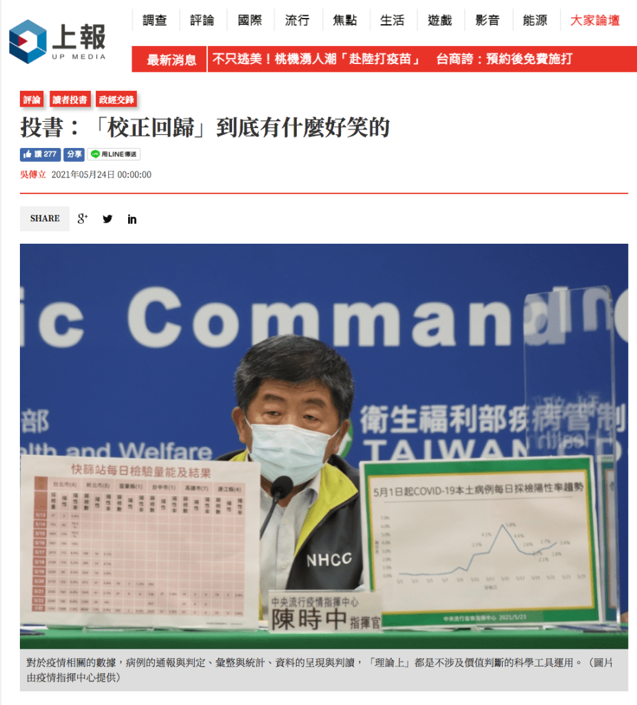對於疫情相關的數據,病例的通報與判定、彙整與統計、資料的呈現與判讀,「理論上」都是不涉及價值判斷的科學工具運用。當然,實務上人類很可能因為一些主觀上的動機而去影響資料的處理。惡意的,比如說「作帳」、「蓋牌」;善意的,比如說「調整分類」。