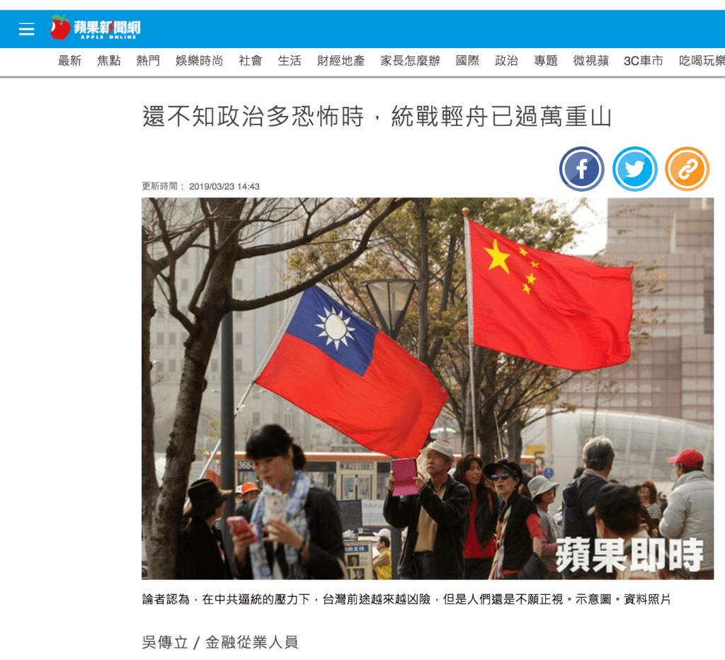 總之,台灣這塊島上的人們被洗腦了幾十年,對中國國民黨幾乎可說是毫無界戒心。經過白色恐怖屠殺的老一輩民眾或許(也只是或許而已)對於民主的重要性還有一點理解、對於中國國民黨的獨裁血腥或許還殘留一點印象;至於年輕一輩的,尤其是解嚴前後出生的中年人以降,根本就不曾意識到「政治可以有多恐怖」,也因為這樣,所以中國的統戰也才這麼輕舟已過萬重山!