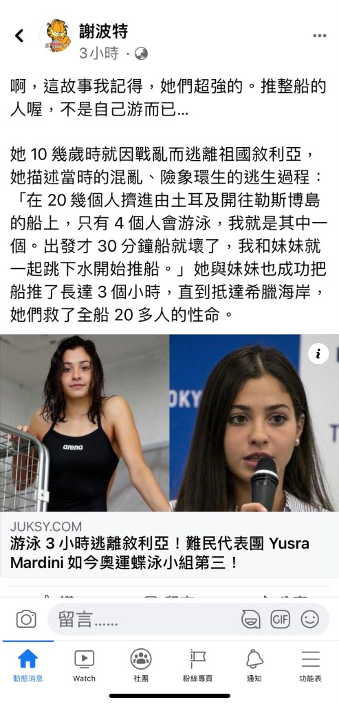有一位是難民代表團的選手