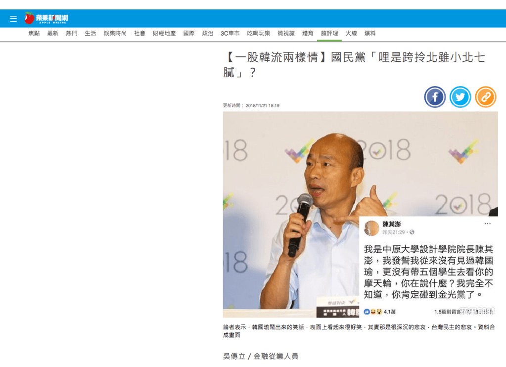 這幾天臉書上最紅的笑話,應該就是韓國瑜扯中原大學的所長,結果所長秒打臉的笑話。