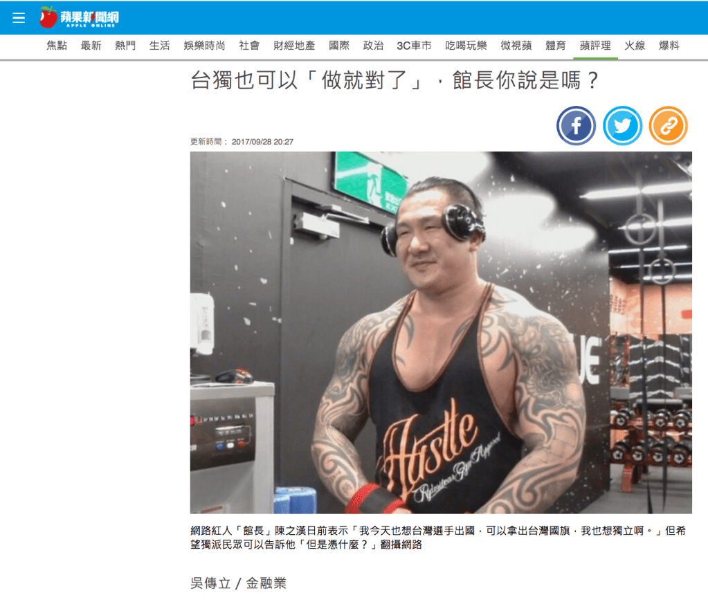 館長或許不喜歡賴清德院長口中的「台獨」這個名詞,但是從館長的言論聽起來,館長的確認同「台灣主權獨立」這個概念。在強身健體的路上,館長常常鼓勵大家「練就對了」;在「建立/鞏固/強大台灣主權」的路上,我們應該因為忌憚中國的文攻武嚇而自我閹割主權?還是用正確的方法與無比的決心練深蹲那樣,「做就對了」?