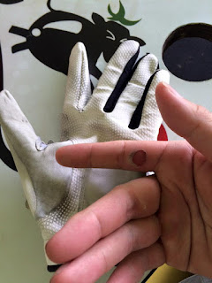 第一次被我嚇到的是桿弟。我開出的球角度偏右約「七十度」~~沒錯,比金門二鍋頭還要多12度~~差點打到站在梯台右邊的桿弟阿既。她嚇得大叫「哎喲你是要給我驚死?毋慢跨貴既款球!」