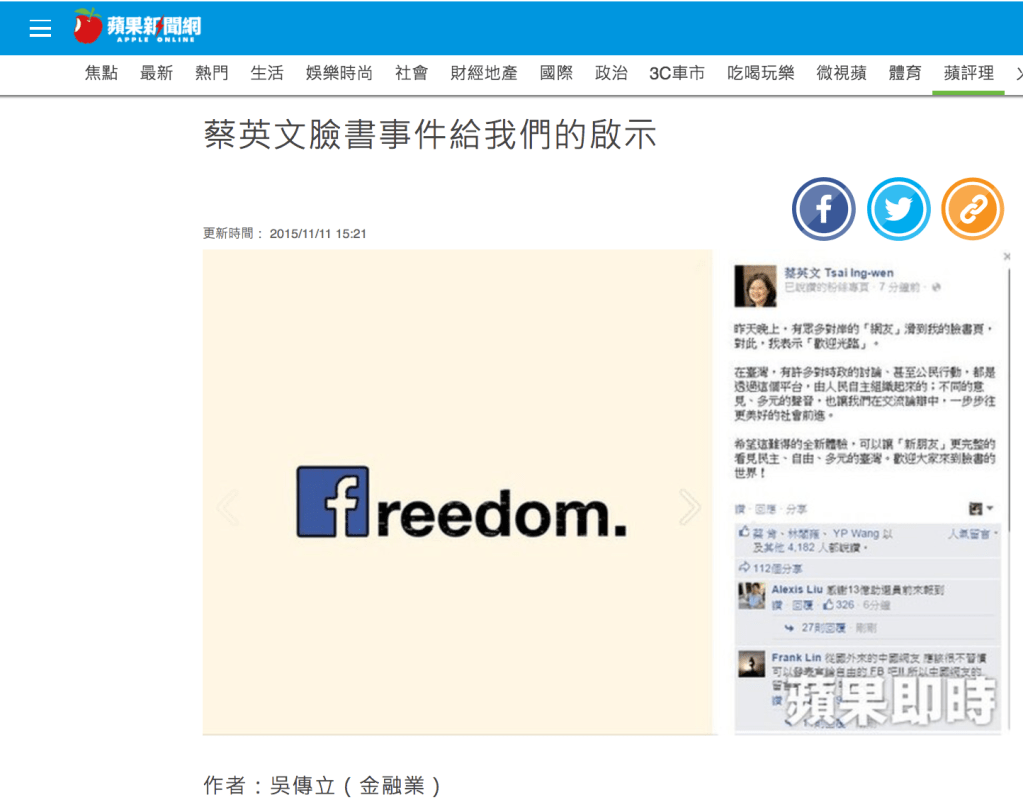 當然,佐柏克能不能從善如流,讓臉書出現這種規則呢?這就有賴中國網民的努力了。中國網民們和平理性,自然不需要特別訂定這些條款;如果偏要全地球撒野,那麼所有民主世界的網民一起對佐柏克施壓,那種壓力應該會比中國的施壓力道來得強力一些。至於臉書負責審查機制的員工是否受到壓力、那又是另外一個議題了。