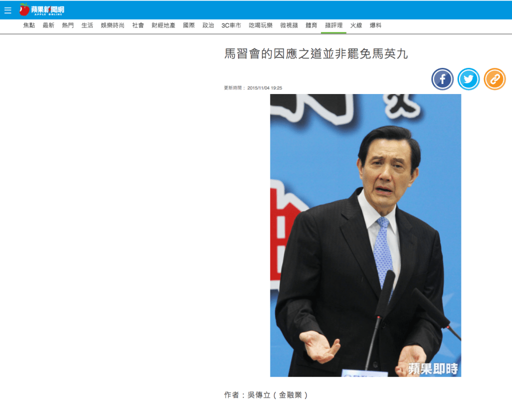 但是綜觀民進黨的發言,只是消極地「馬總統曾經承諾不和中國領導人見面,怎麼可以不守信用呢?」、「台灣主權很重要,馬總統請你不要亂搞哦!」、「要做什麼事情的話,必須要公開透明接受監督哦!」。