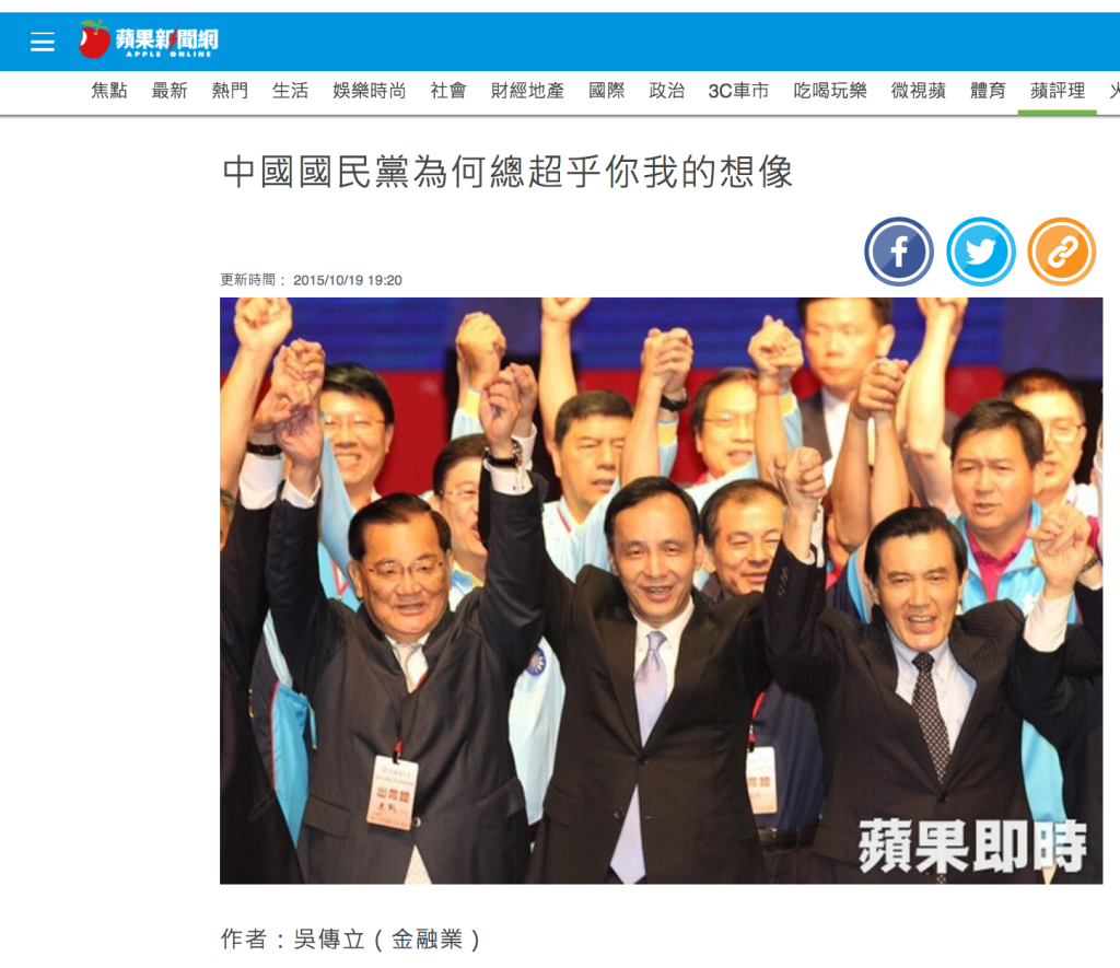 去年九合一選舉,中國國民黨的得票率固然下降,但是有「潰敗」到「幾乎亡黨」嗎?對於多數民眾而言,臨全會之後,中國國民黨的形象有比去年十一月的時候更壞嗎?就因為中國國民黨換柱,就真的覺得中國國民黨快被亡黨了?