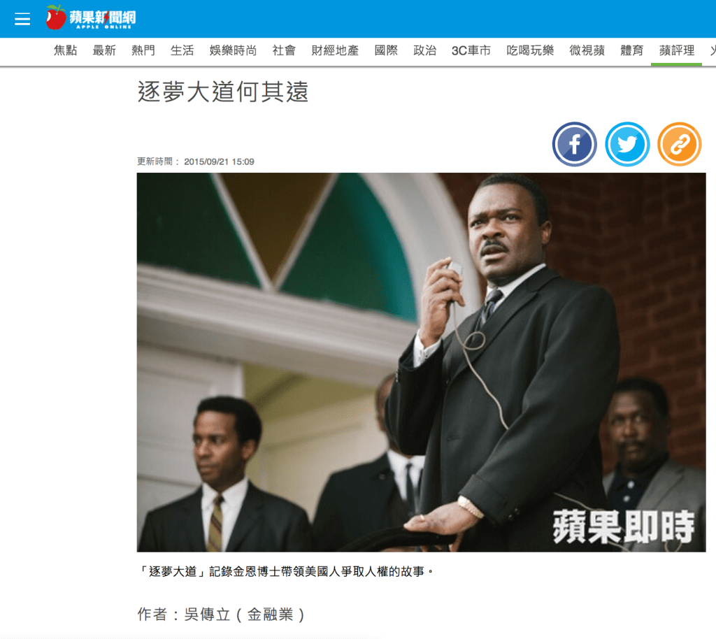「逐夢大道」是一部感人的電影,記錄金恩博士帶領美國人爭取人權的故事。每個人都應該去看看這部片子,然後問問自己:如果出生在那個時代,自己會是電影中的哪一個人物。