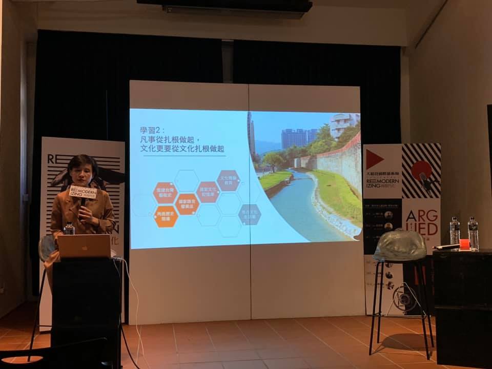 主講人笑著說「只是沒想到,文化部長任內必須處理包括衛武營國家藝術文化中心等的好幾個大型硬體建設,才發現建築知識也很重要,早知道的話當年就不一定轉系了」。