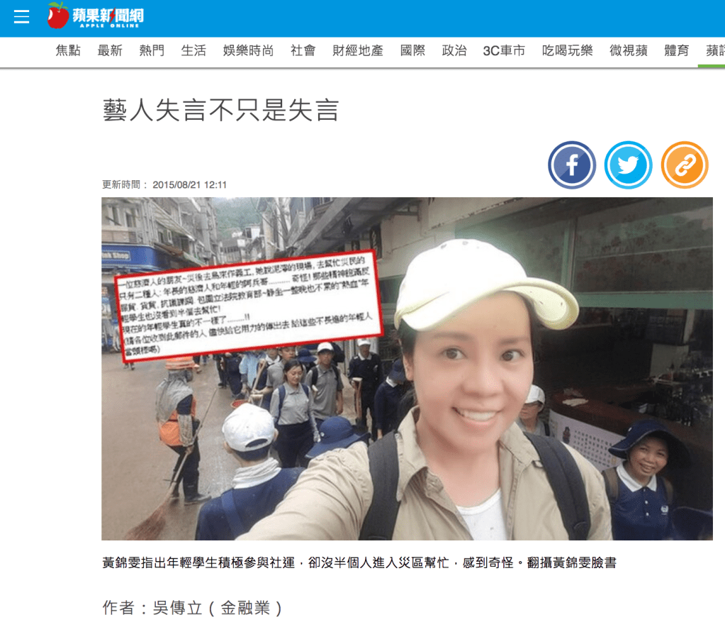 藝人批評「反服貿貨貿課綱的學生也沒看到半個去幫忙」、「給這些不長進的年輕人當頭棒喝」。事隔不到兩天,藝人出面落淚道歉。表面上是藝人失言惹風波,其實這件事情的意義,遠比想像中來得深遠。