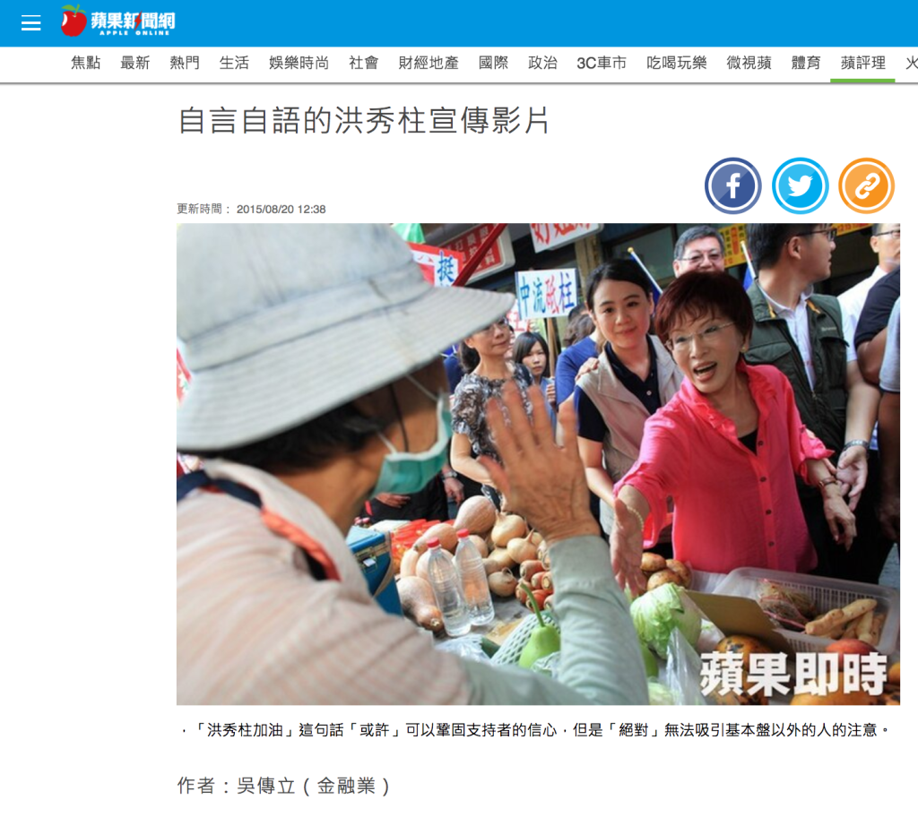 第一種可能,力有未逮。洪秀柱競選團隊裡面實在缺乏人才,看不出來這隻影片空洞在哪裡。可是這沒道理啊!如果連路人甲的筆者都可以看出這樣的問題,一個偌大的競選團隊不可能竟無一人長腦袋。