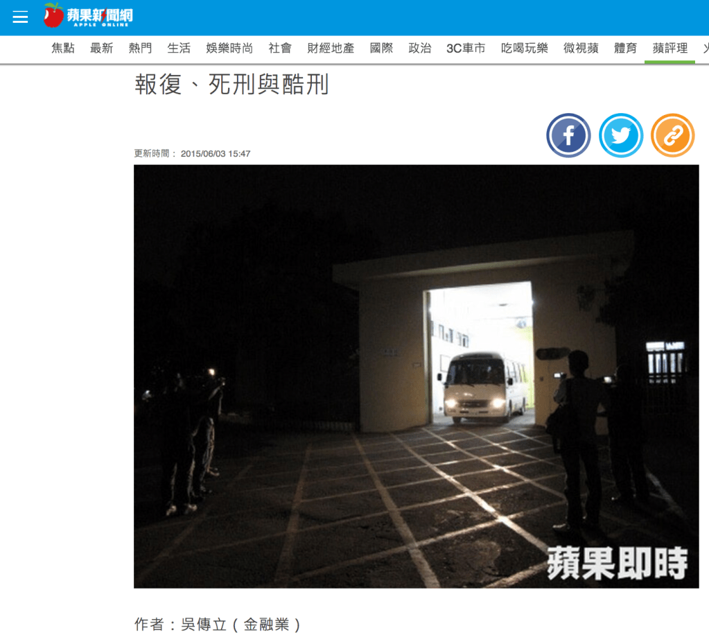 哦,「畢竟酷刑太殘忍;所以我們要求沒那麼高,但是死刑起碼要維持吧?」。所以,聽起來,「報復」真的很重要;不該「凌遲致死」的報復,起碼要有「槍斃」的報復。畢竟「報復」本身就是一種「目的」啊!