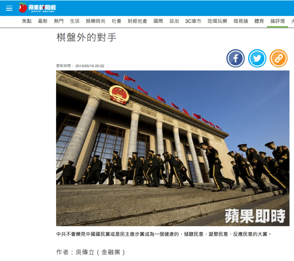 反正中國國民黨的利用價值已經不高了,不如就此踩它兩腳,助長民進黨的氣燄、降低台灣民眾的戒心,讓台灣政壇進入百家爭鳴的戰國時代,以利接下來的大一統新局。由此觀之,面對2016總統大選,中國國民黨竟然到目前還沒有大咖出來應戰,也就不足為奇了~~畢竟這盤棋實在太複雜了,要事先喬定的勢力太多了啊!