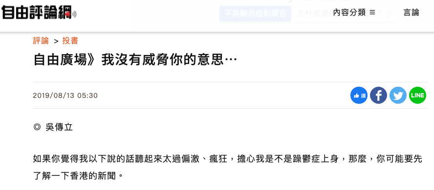 如果你覺得我以下說的話聽起來太過偏激、瘋狂,擔心我是不是躁鬱症上身,那麼,你可能要先了解一下香港的新聞。