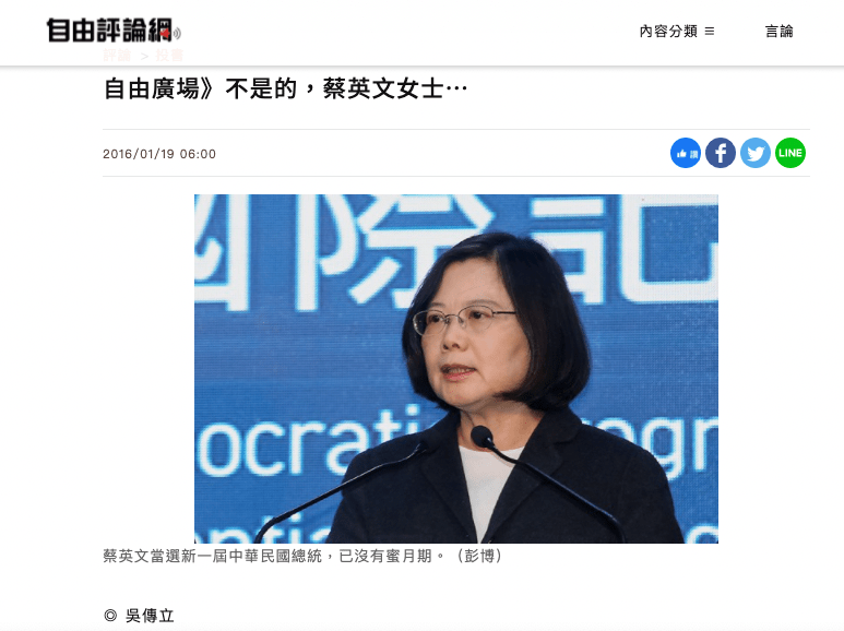 蔡總統,您的政治蜜月期,很抱歉只有一個晚上。恭喜您,也祝福您。
