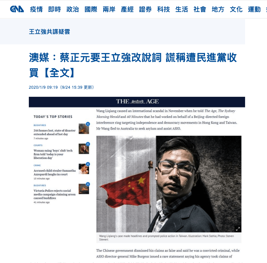 還回想起大選前一兩天「澳媒:蔡正元要王立強改說詞 謊稱遭民進黨收買」這樣子驚天動地的新聞。