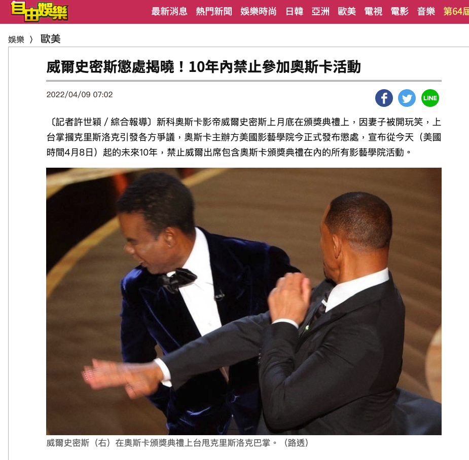 而這次奧斯卡事件中大家討論得沸沸揚揚的「誰對誰錯」、又或者「不是誰和誰發生什麼糾紛的問題,而是怎樣的行為與怎樣的反應才是文明社會該有的準則」……這些問題與各自的答案,無可避免地與上述的那些客觀資訊相關。