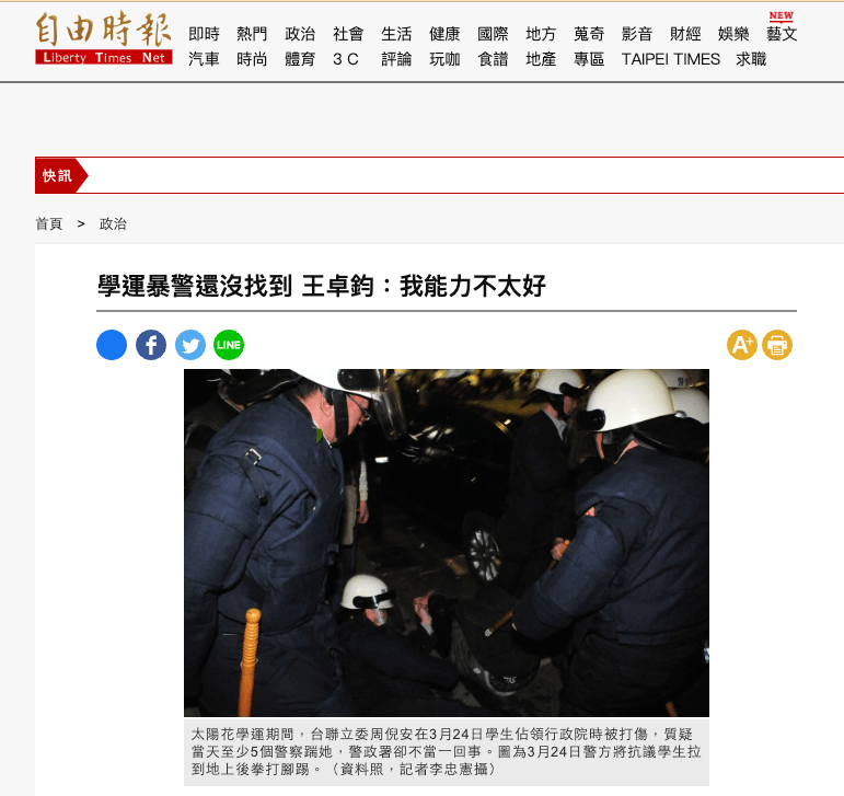 當立委質疑「太陽花學運裡的暴警明明照片如此清晰,為何卻查無此人」時,警政署長王卓鈞在立法院答詢時說「我能力比較不好」。