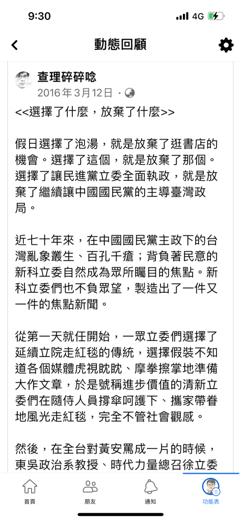 假日選擇了泡湯,就是放棄了逛書店的機會。選擇了這個,就是放棄了那個。選擇了讓民進黨立委全面執政,就是放棄了繼續讓中國國民黨的主導臺灣政局。