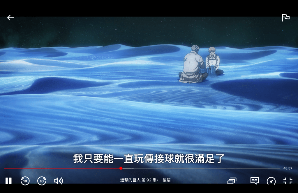 艾連透過始祖之力領著阿爾敏、米卡莎不斷變換時間空間年齡場景對談的那幾幕