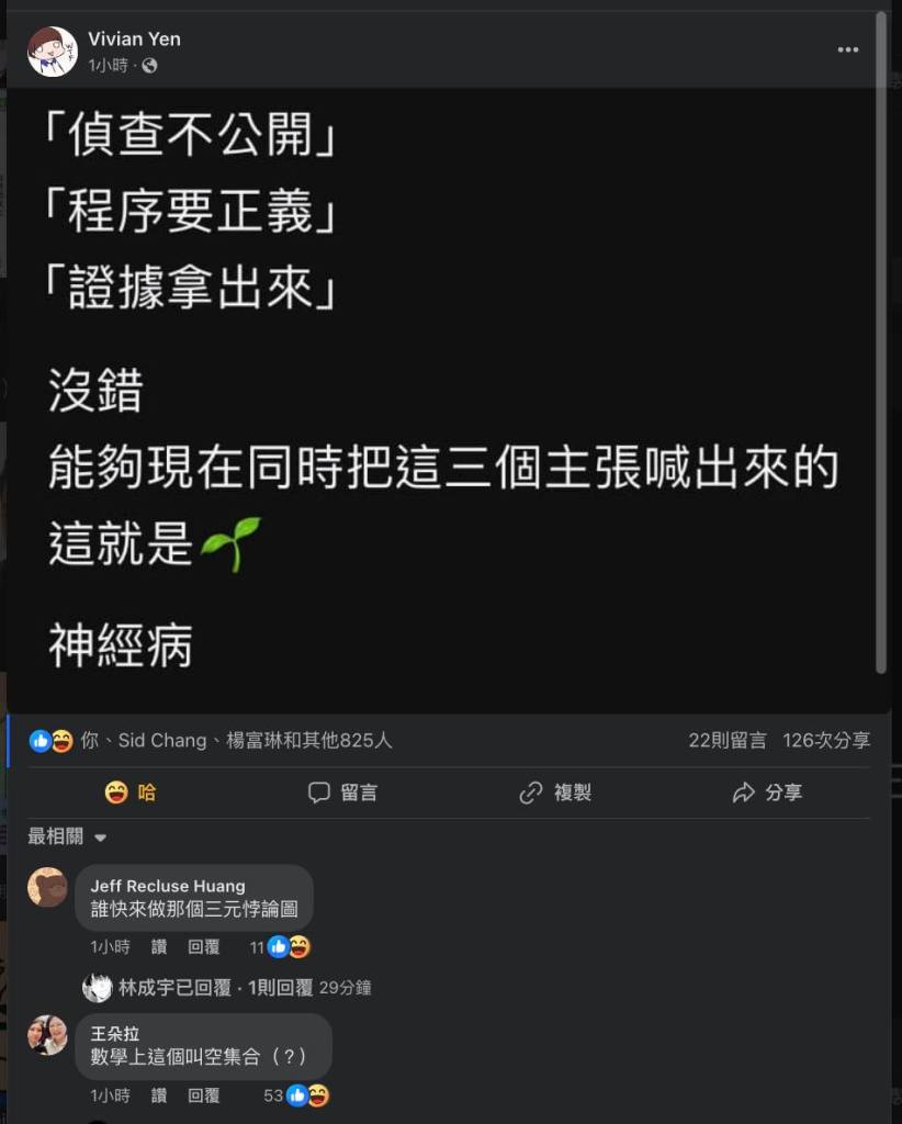 問題是,當這個社會裡,那些手握麥克風、擁有高聲量話語權的網紅或是政治人物,特別是像某些具有有國際名校法學博士學位的人,當這樣的人理所當然、臉不紅氣不喘地宣揚著這種荒謬訴求時,絕大多數的一般人,如果對於這個網紅政客沒有戒心,真的會很輕易地就忘記用自己的基本邏輯去思考問題,而是先入為主地認同了網紅政客的『以上皆是』了