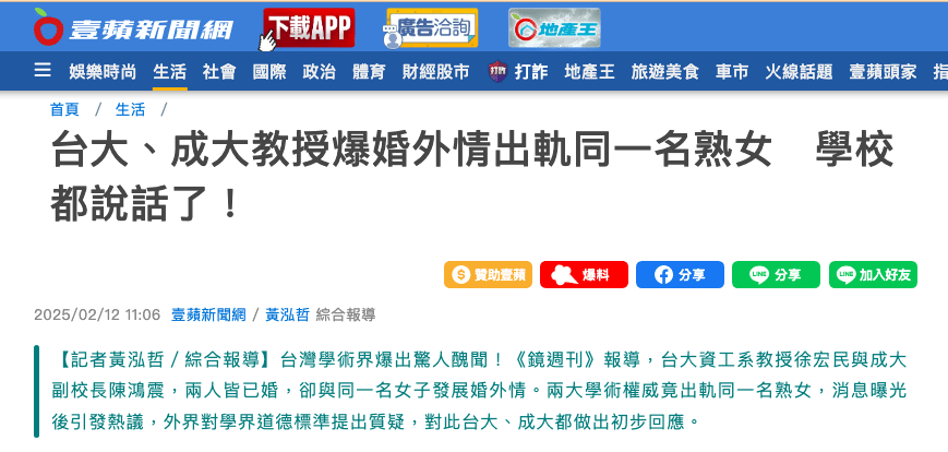 台大、成大教授的婚外情,到底與公共利益有什麼關係?值得這樣新聞媒體這樣大挖特挖?