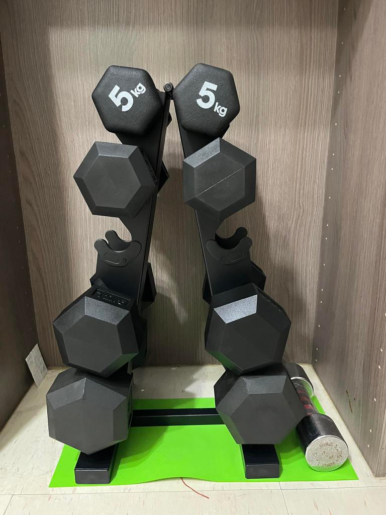圖說:徒手訓練、室內單槓、健身椅、一組組合式的啞鈴/槓鈴,再加上這幾組啞鈴,就夠我這輩子練到老了。