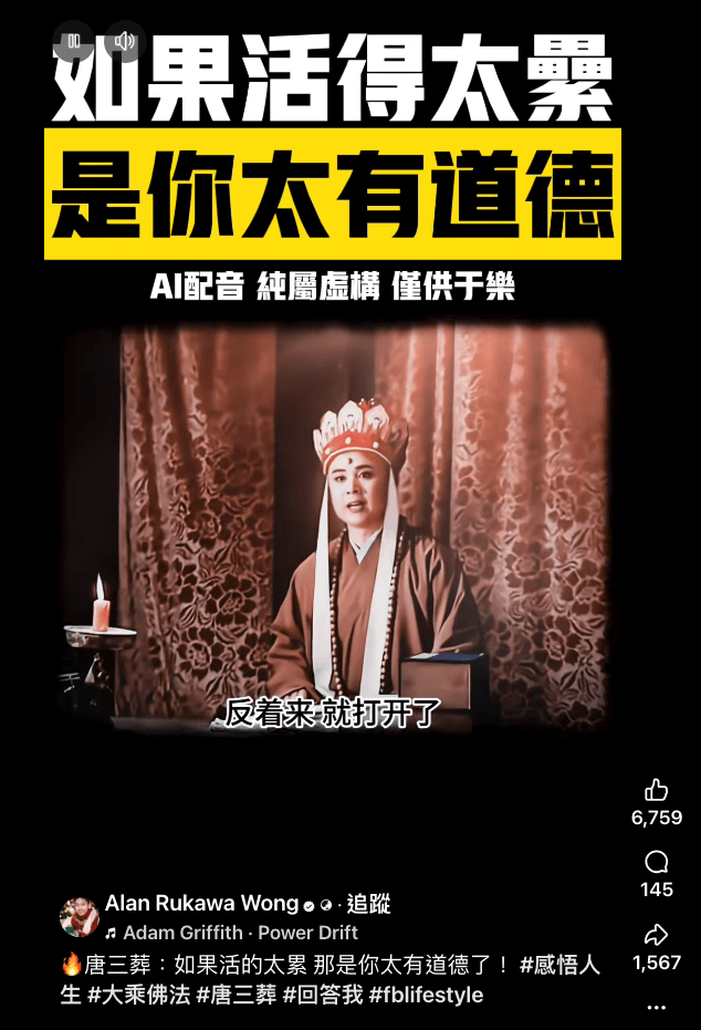 網路上中國那邊流傳過來的「唐三葬」語錄,