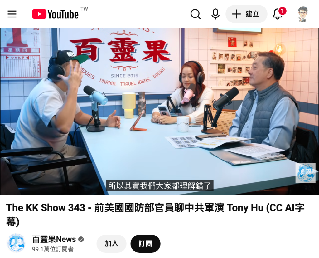 《 The KK Show 343 – 前美國國防部官員聊中共軍演 Tony Hu》