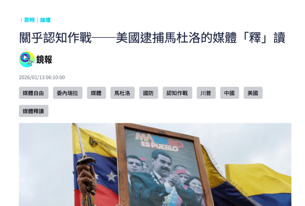 「美國生擒馬杜洛事件」後,同樣是在24小時之內,網路上有不少個人型的YT節目,都能迅速做出既深且廣的戰略分析。相較之下,台灣的政論節目明明有經費有人脈,做出的內容卻相對流於浮面。真的懇請加油!