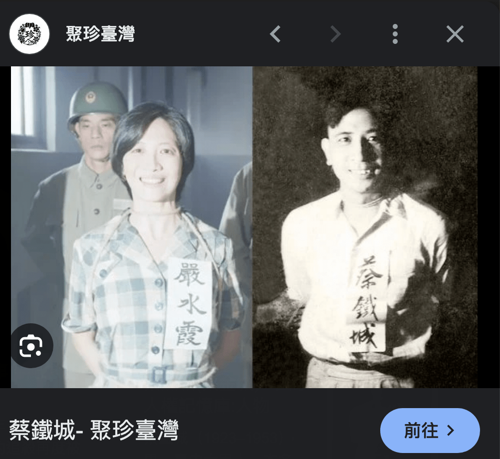 於是我又想到蔡鐵城、嚴水霞
