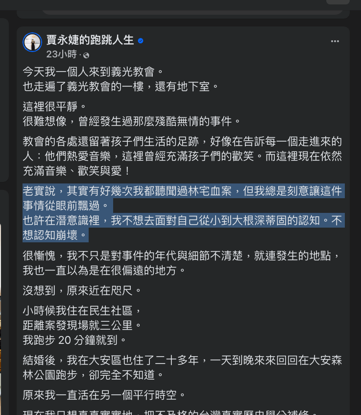 關於賈永婕對於「林宅血案」、「白色恐怖」等歷史的「忽然驚醒」,網路上有各種不同的反應。