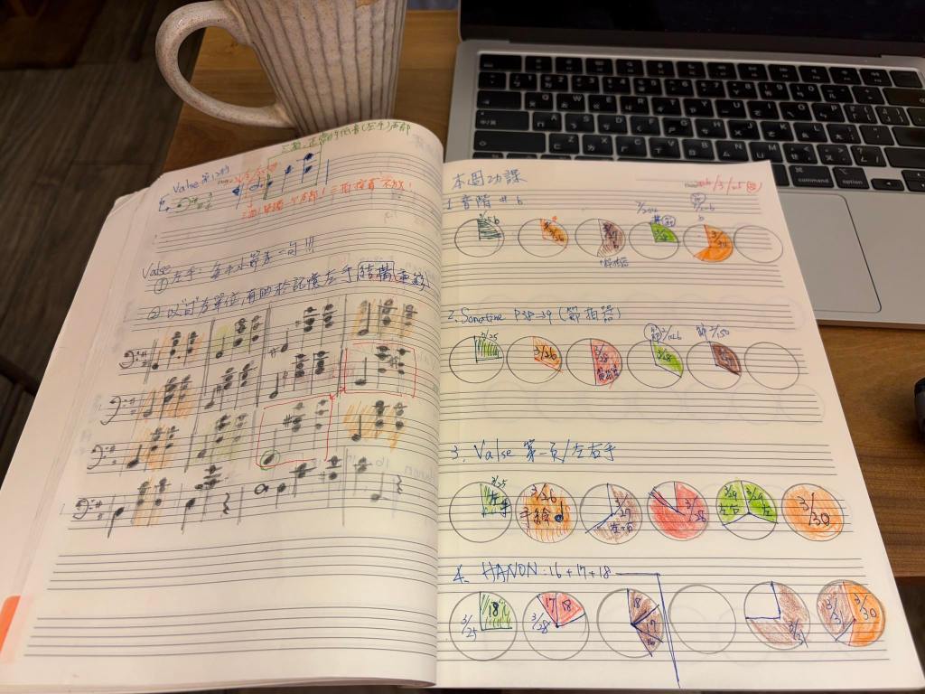 我三不五時就跟鋼琴老師說,我的目標是「想要在三年內達到『能夠考上國小音樂班』」的程度。